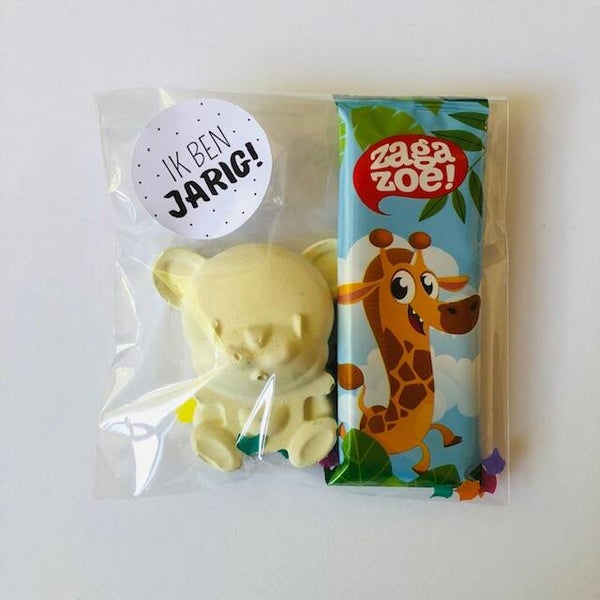Bij te bestellen een snoepje naar keuze. (smarties, rozijntjes en schatkistje kunnen tegen meerprijs worden ingepakt)