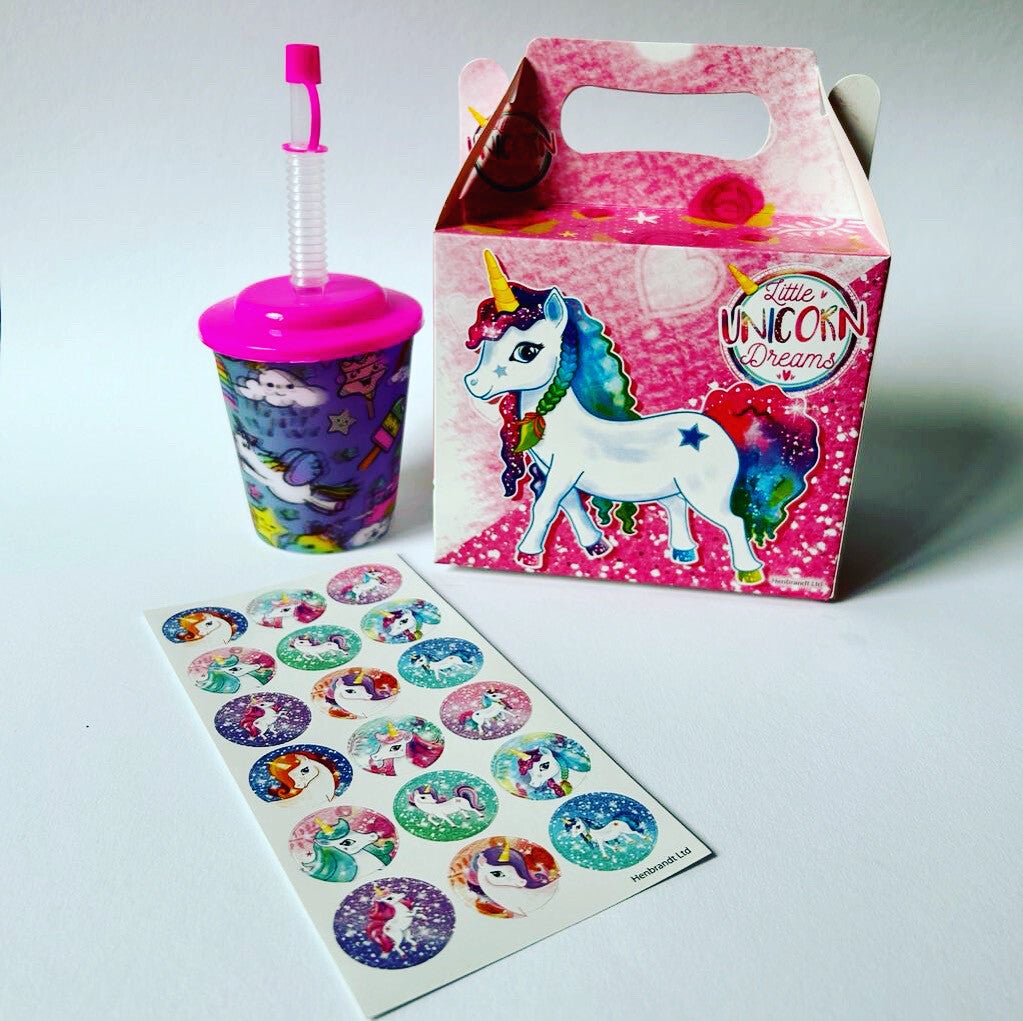 Deze unicorn traktatie is toch een feestje! Unicorn traktatie doosje met unicorn drinkbeker en unicorn stickers. Je kan zelf kiezen of je nog iets lekkers en een sticker wil toevoegen. Let op: deze traktatie is om zelf te maken!