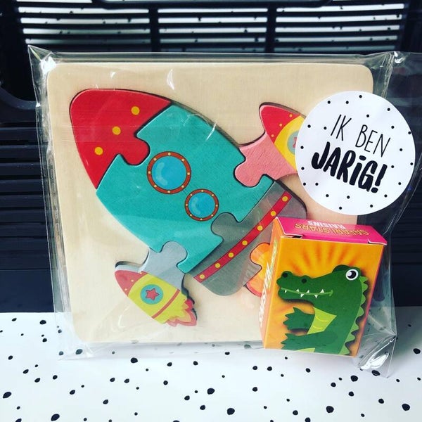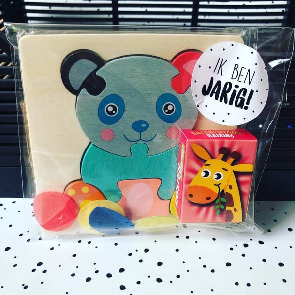 Een super leuke kant en klare traktatie! Een leuk houten puzzeltje in 6 verschillende varianten, deze worden gemixt geleverd.