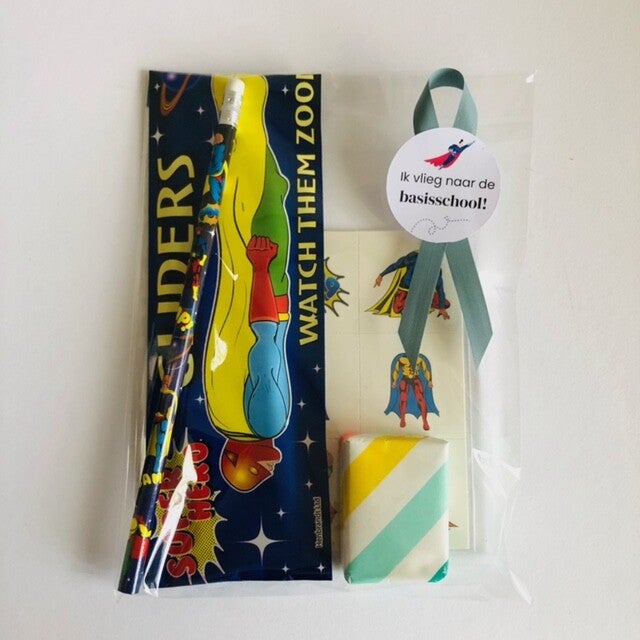 Leuke traktatie om uit te delen wanneer je kind afscheid neemt op de peuterspeelzaal of bij de gastouder. Helemaal leuk met de sticker 'Ik vlieg naar de basisschool!'. Je kan natuurlijk ook een andere sticker kiezen als de traktatie niet voor een afscheid is.