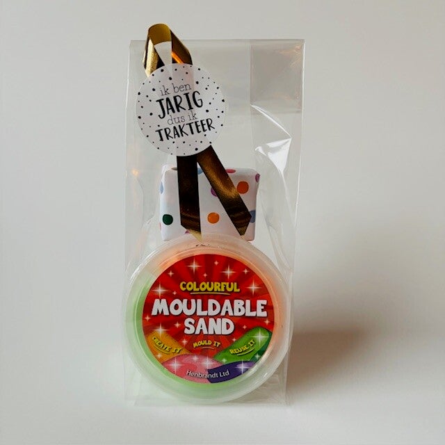 Leuke traktatie met mouldable sand putty, deze traktatie is altijd een succes bij de kids!